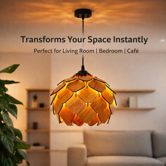Wooden Ceiling Lamp | Designer Hanging Light for Living Room, Bedroom & Home Decor | Premium Wood Light Fixture CL001B
