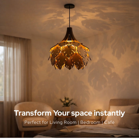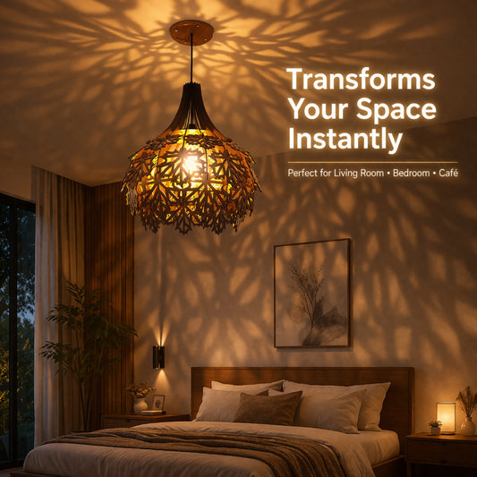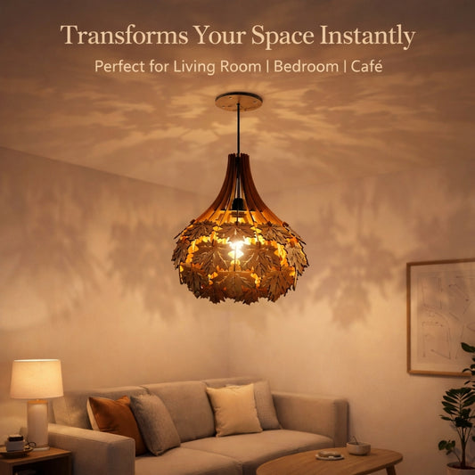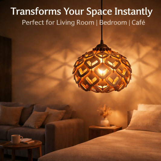 Wooden Ceiling Lamp with Artistic Shadow Patterns | Modern Decorative Hanging Light for Living Room & Bedroom | Woodiography CL002B